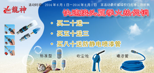 2、買五十送三(即買五十個(gè)快速接頭送三個(gè)法國(guó)佩釜快速接頭或法法國(guó)佩釜吹塵槍(編號(hào):38016)三把)