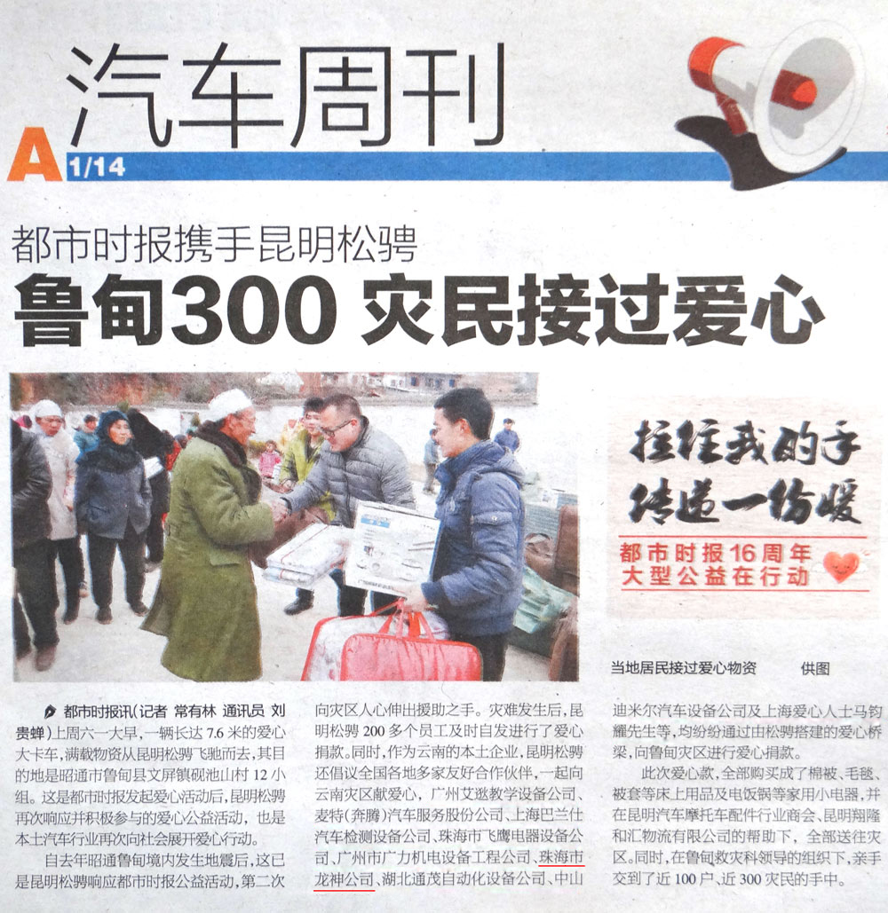 “天災(zāi)無情,人間有愛”珠海龍神魯?shù)楂I(xiàn)愛心活動 千里送溫暖,呼吁大家關(guān)注共疆土正在受難的兄弟姐妹 珠海龍神獻(xiàn)愛心活動受到報刊表彰,一起將正能量傳遞下去 2015-02-11 15634